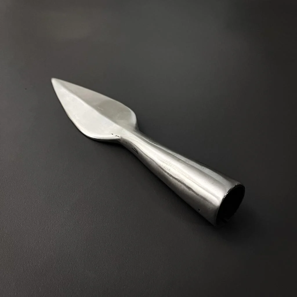 This hand-forged high carbon steel leaf spearhead is 22cm long and extremely sturdy; perfect for fitting to a haft for throwing practice.