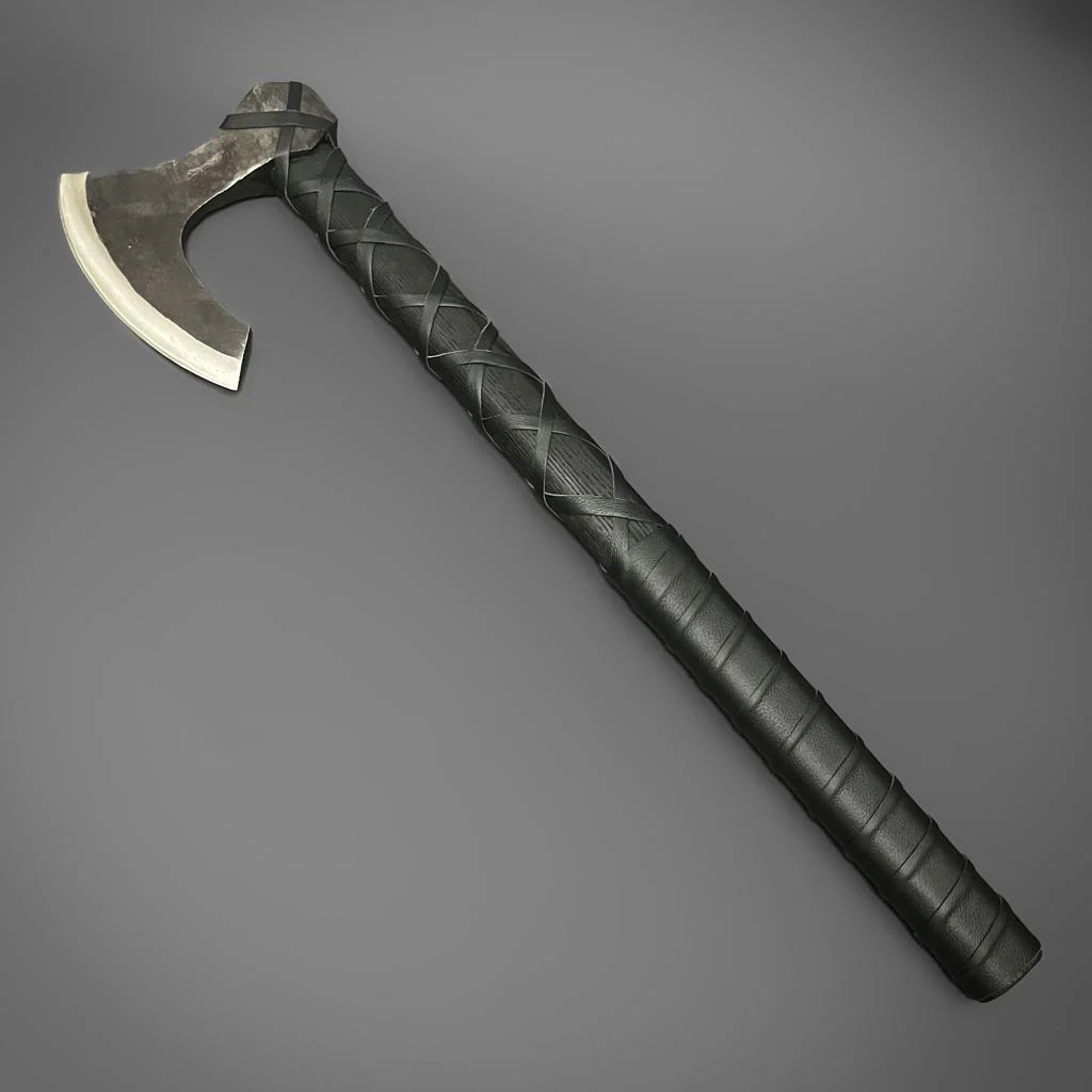 Unleashing the beast that is Raven Forge's The Black Rollo. A huge, forge-finish bearded head with a full-polish sleek sharp edge leads to a fully-charred and waxed English Ash haft. The haft has been hand leather-wrapped with chunky black leather, crossed up the haft and finished with a large grip. A serious rival to our best-selling Black Ragnar Axe.